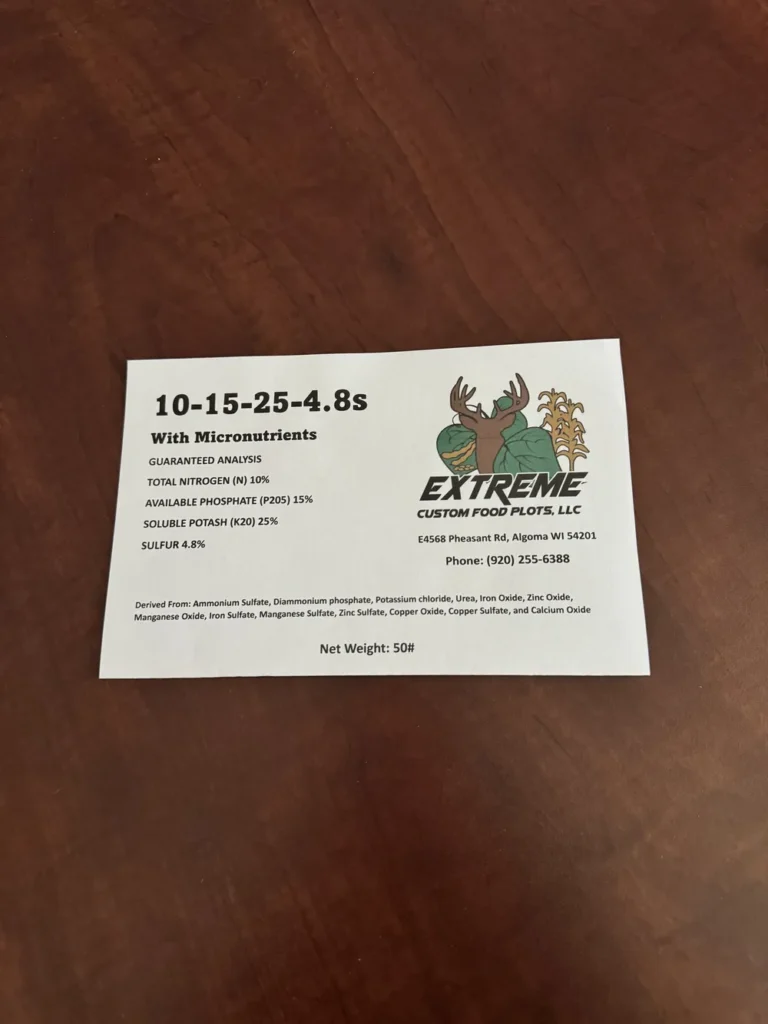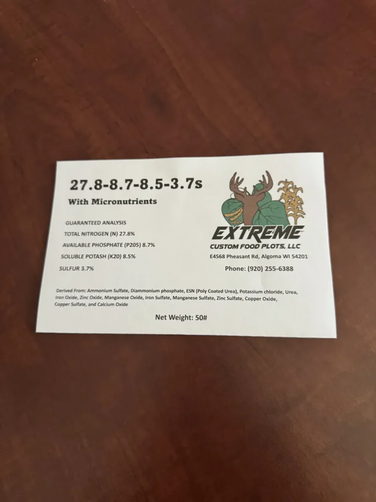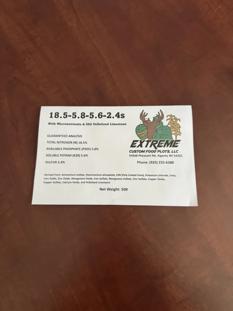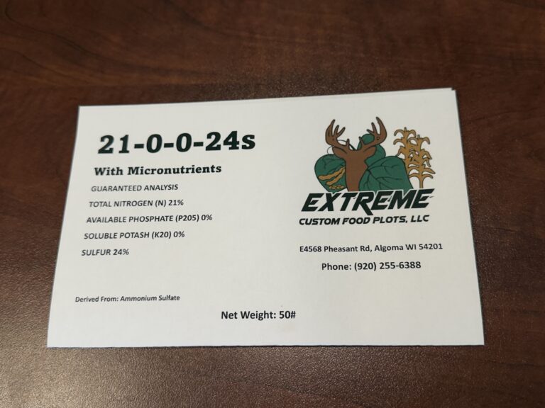 Extreme Custom Food Plots has created fertilizer blends that are not available at most fertilizer dealers in bagged form. ECFP has seen a need for this due to the limited choices when looking for bagged fertilizer. We have 4 premium blends that also have all the micros blended into the fertilizers. We want the “do it your selfer” to have access to the best fertilizers available to them. Extreme Custom Food Plots can ship these products to you on pallets anywhere along with your chemical and seed. We are committed to helping you have the very best possible success with your food plots, and it all starts with the soil. Healthy soil produces an abundance of nutrient-rich plants which then produce healthy and productive animals. Growing the biggest bucks possible and having a healthy deer herd starts with the soil. These products will help your plots be the best that they can possibly be. At Extreme Custom Food Plots our motto is Helping You Grow Better Food Plots & A Healthier Deer Herd!