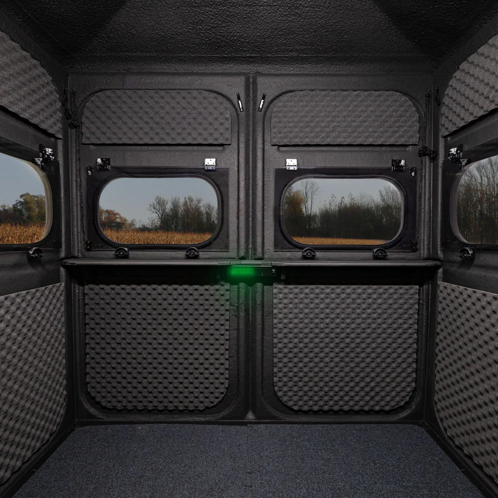 Constructed from sturdy fiberglass with a gel-coat finish, this blind is made to withstand the elements season after season. Its well-thought-out design offers a balance of comfort, durability, and practicality, meeting the needs of hunters in a wide range of conditions.