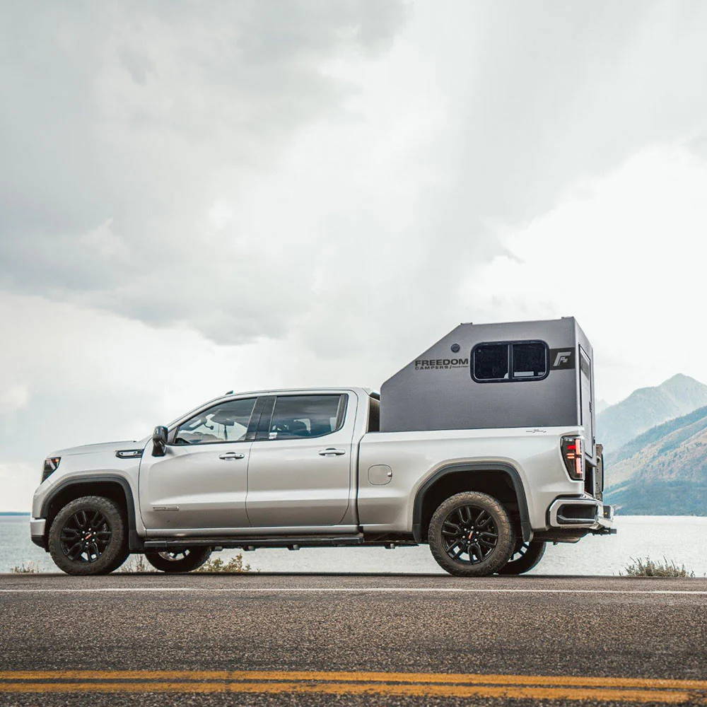 The Freedom Camper is a lightweight, ultra-insulated truck bed camper designed to fit in a pickup truck, a utility trailer, or a toy hauler platform. Whether you’re headed out on a hunting trip, exploring backroads, or want a compact camper that fits in a truck bed, this modular solution has you covered, literally.