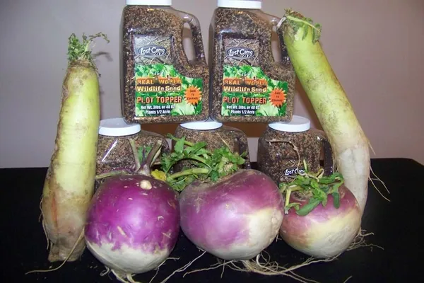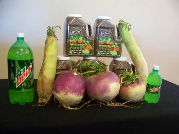 We came up with this unique blend which includes crimson clover, oil-seed radish, tillage radish, rape, purple head turnips, sugar beets, forage collards and Impact forage collards after years of side by side testing. The result is a product that has seen sales jump substantially year after year, telling us that our customers are very happy with the results. Fall Plot Topper can be planted alone or planted in the same plot with our Whitetail Oats and Harvest Salad. In the right situation Plot Topper can also be broadcast on top of standing soybeans once they start to turn yellow adding more drawing power to soybean plots.