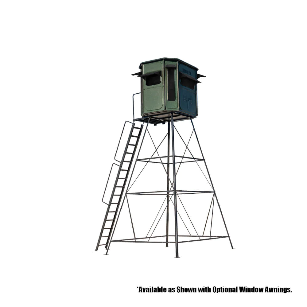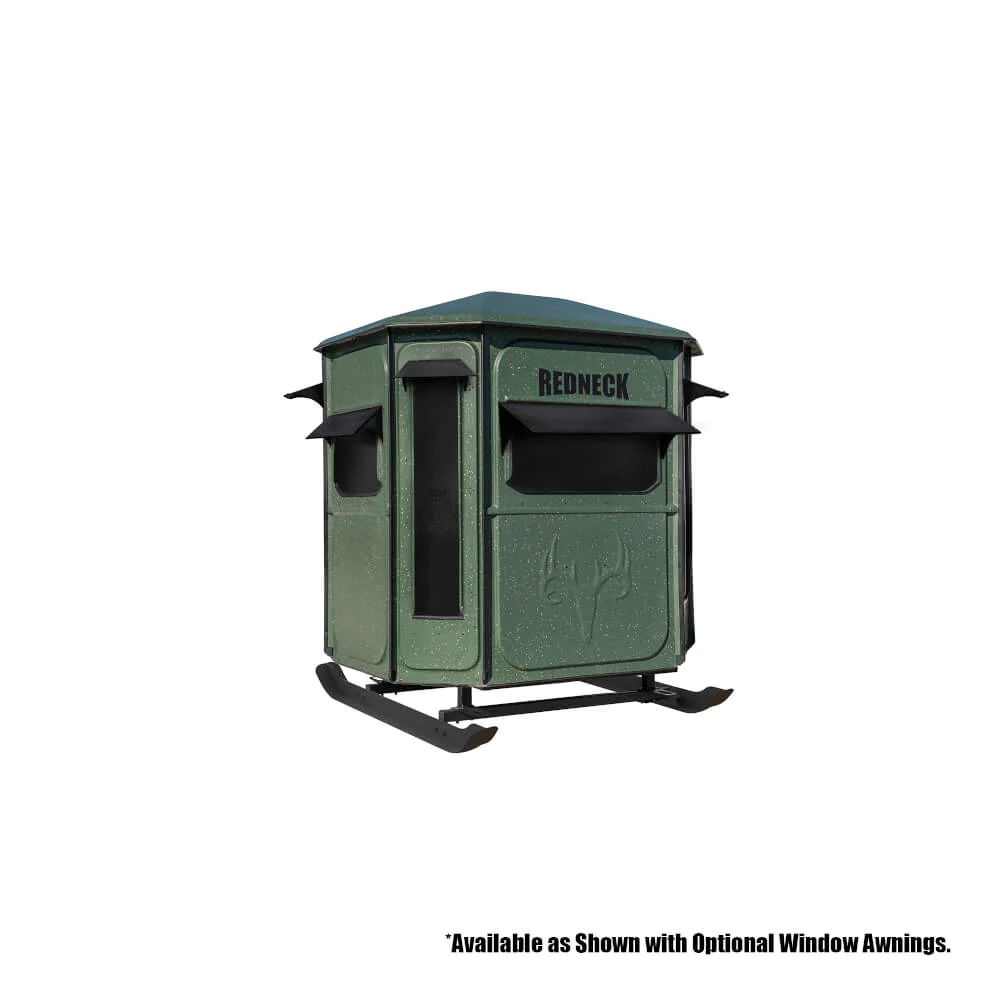 Large tinted, tempered automotive-glass windows with whisper-quiet window hinges provide a clear view. High-quality automotive window gaskets and door molding help keep your scent in, the blind dry, and the pests out. The fiberglass bottom prevents rotting and varmint damage.