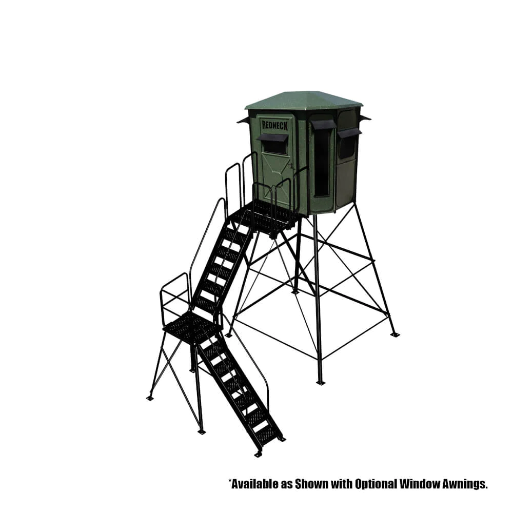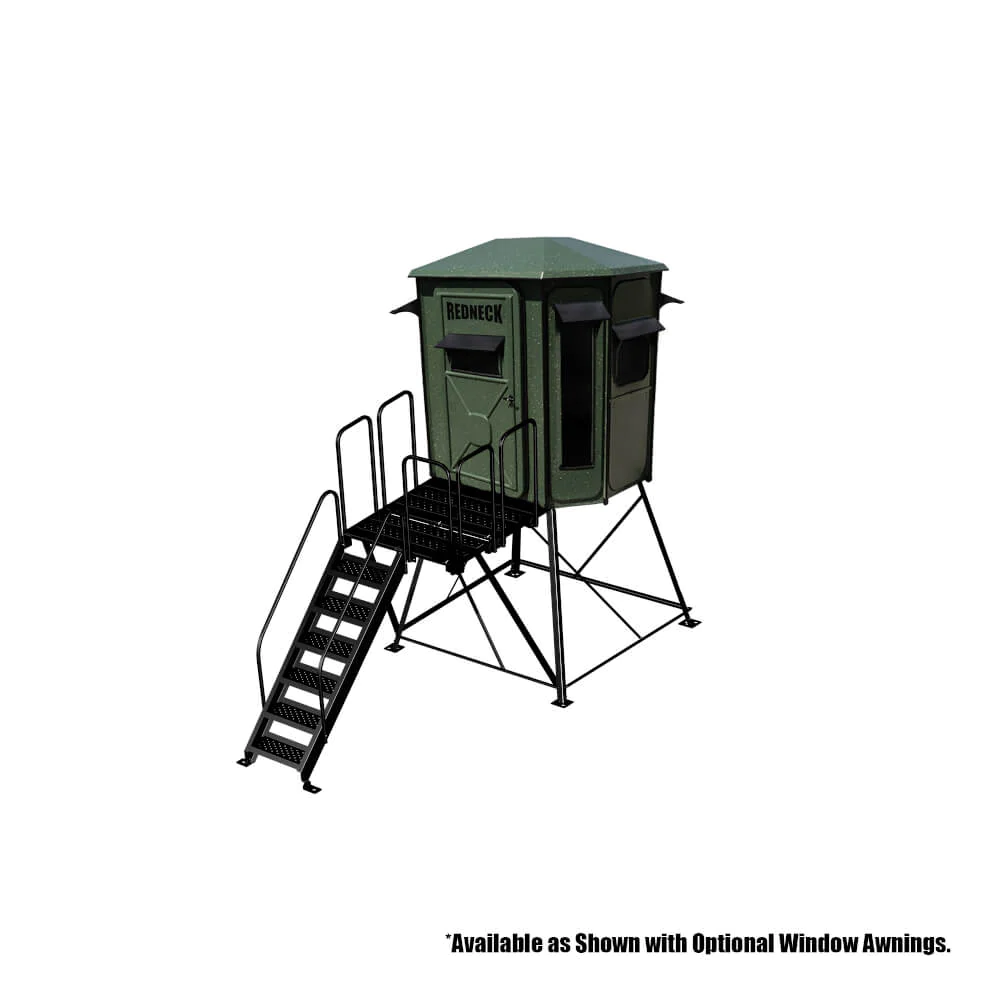Redneck 360° series box blinds set the standard for functionality and comfort when hunting. Combine the 46″ tall vertical windows with large oversized horizontal windows and a roomy 5×6 interior, and you have plenty of room, visibility, and angles to make a perfect shot when the animal you’re hunting presents itself. There is plenty of room for up to 2 adults.