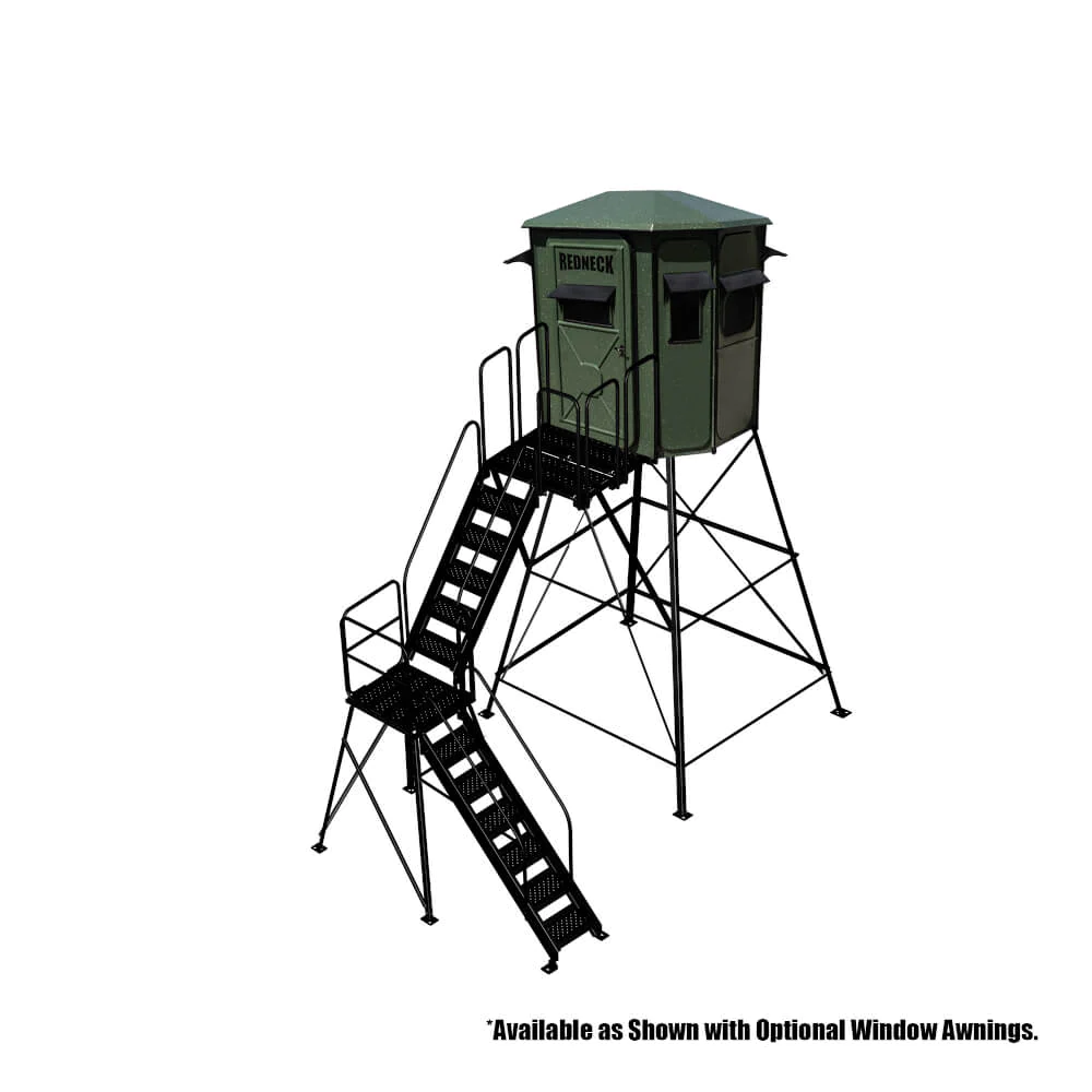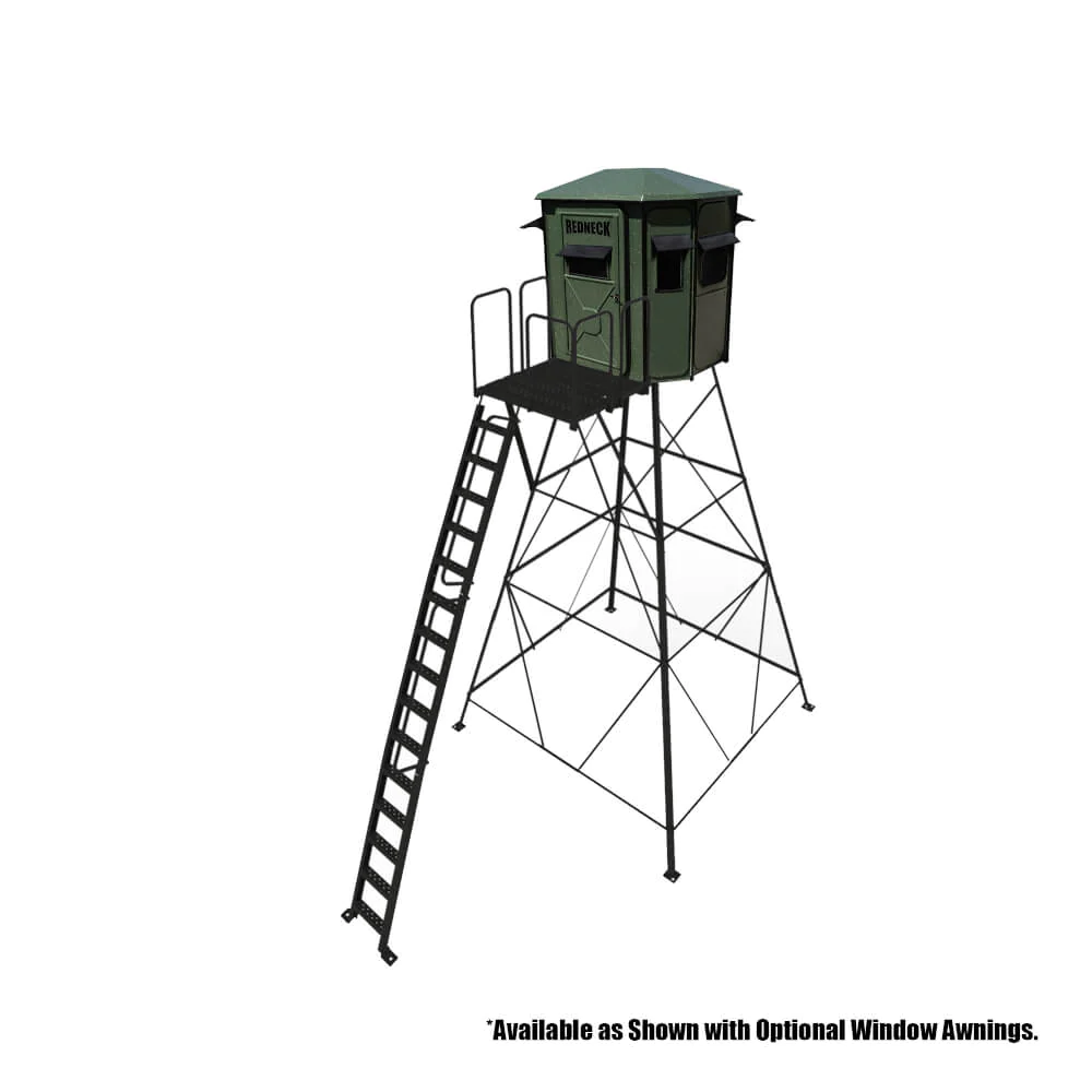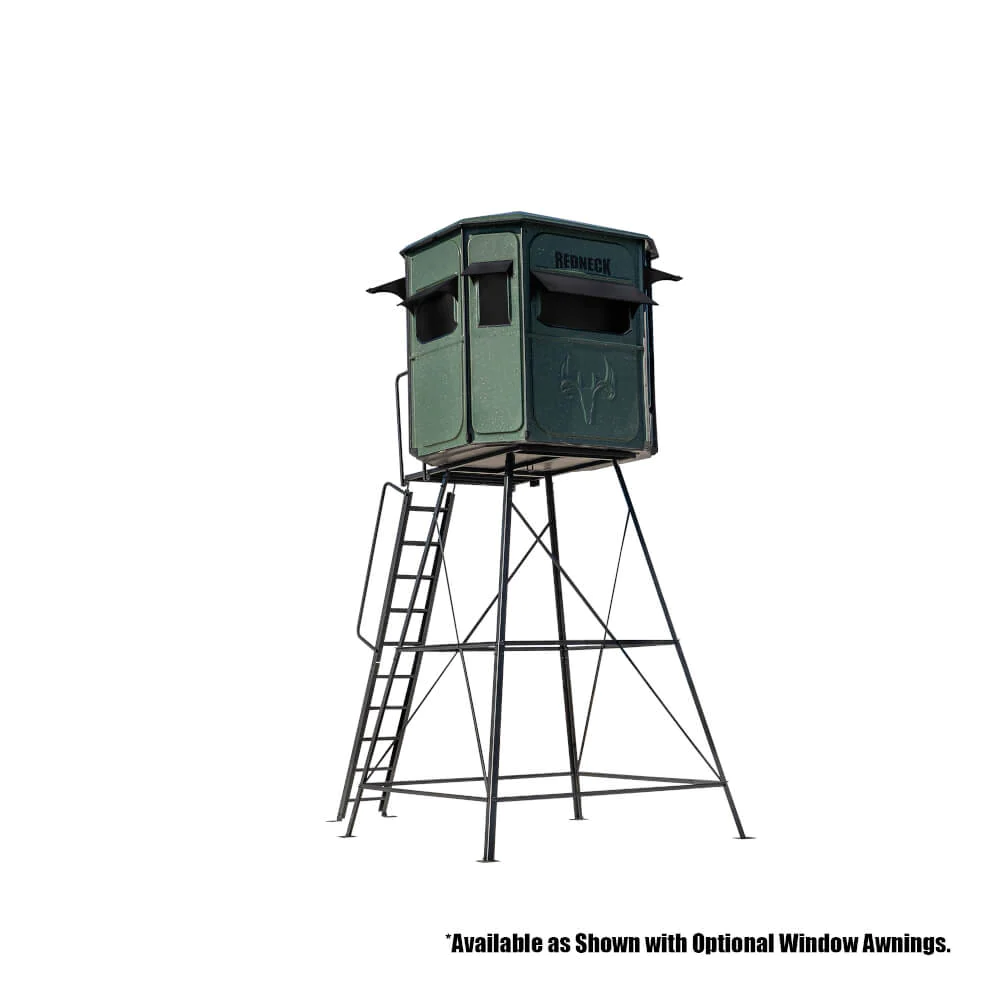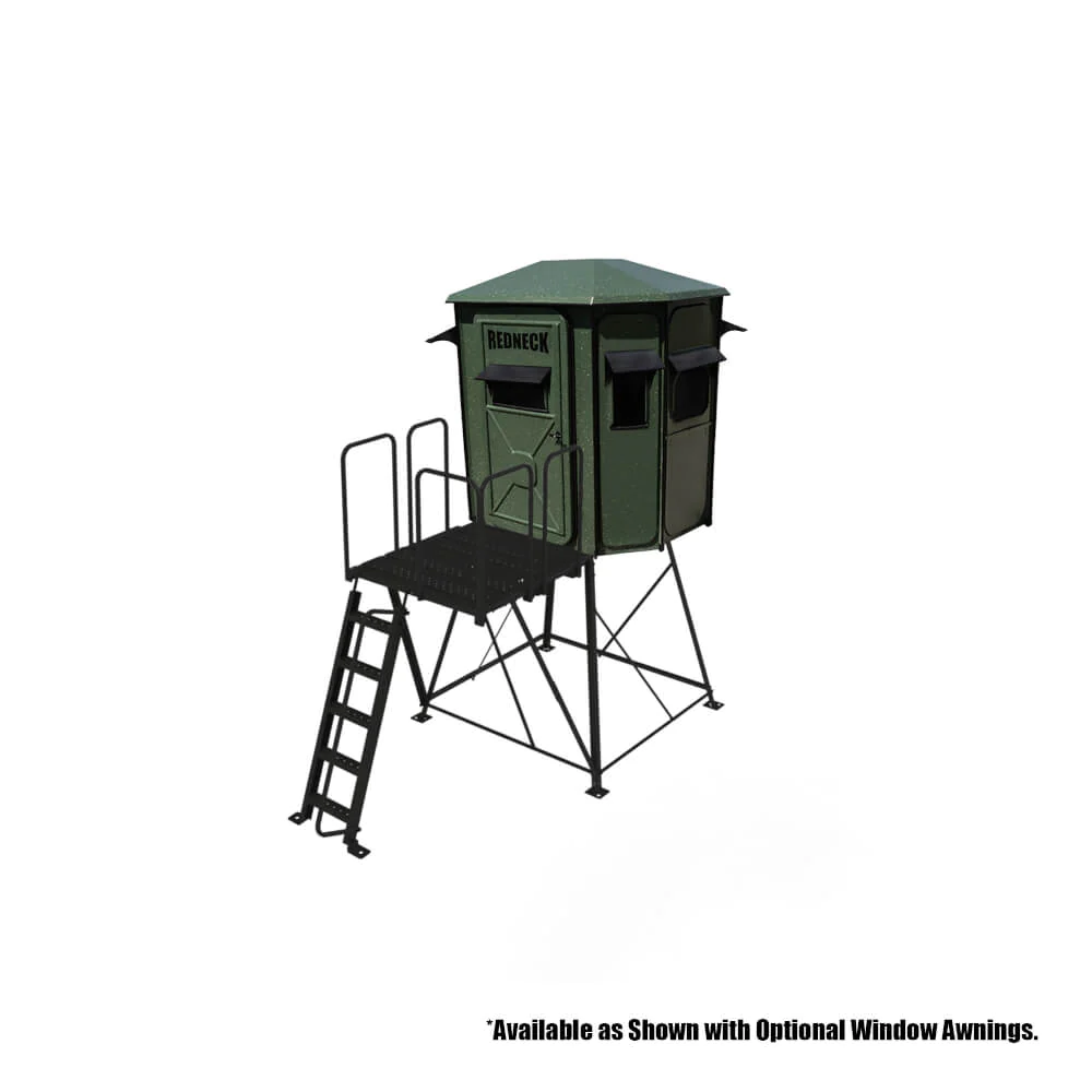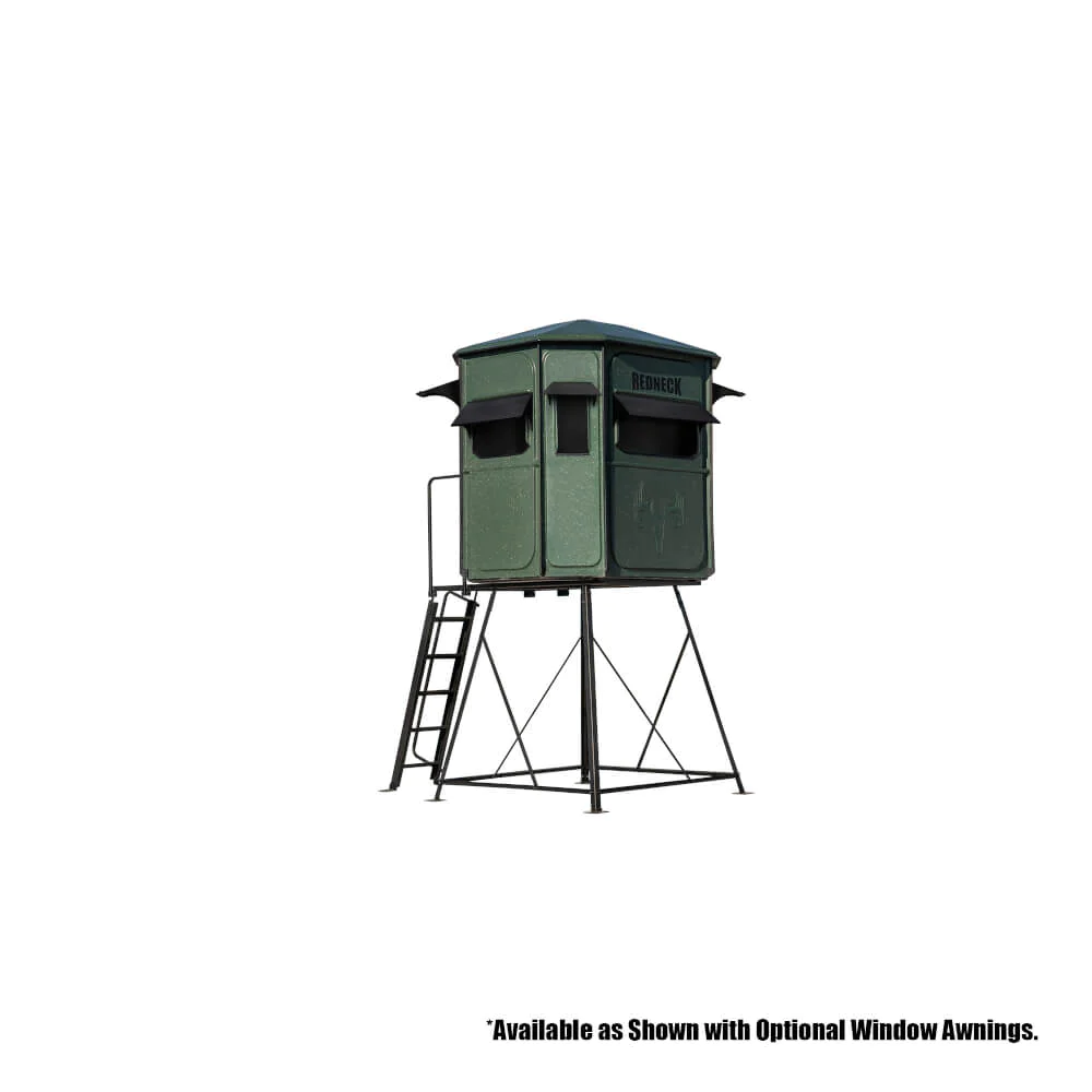 Redneck’s Hunting Blinds set the standard for functionality and comfort when hunting. The two large oversized front horizontal windows make it easy for two hunters to have a shooting window in the roomy 5×6 interior. Combining these features, you have a perfect blind for a crossbow or gun hunting, giving you plenty of room, visibility, and angles to make a perfect shot when the animal you are hunting presents itself—plenty of room for up to 2 adults.
