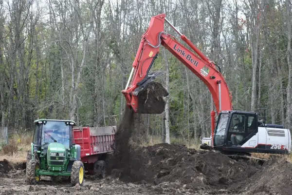 • You will need a digger capable of re-profiling and land forming soil, additional construction equipment to relocate the spoilings.